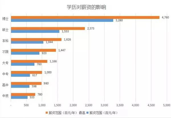 关于工业机器人行业从业者的薪资,下面的这些图表会直白地告诉你,不同的学历、工作经验以及服务企业类型的薪资范围: