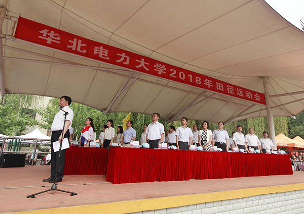 在全体师生的掌声与欢呼声中,校长杨勇平宣布华北电力大学2018年田径运动会正式开幕。