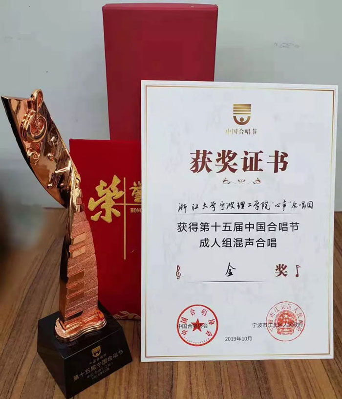 秋风谡谡入夜凉,墙外又闻桂花香。以“礼赞新中国 奋进新时代”为主题的第十五届中国合唱节于10月23日落下尾声,浙江大学宁波理工学院“心声”合唱团再添新彩,荣获成人混声合唱组金奖。