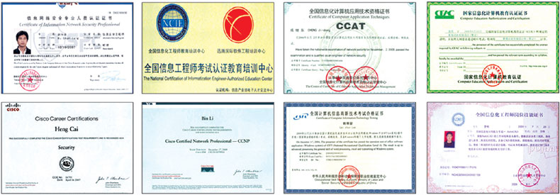 专业技能证书:信息化工程师岗位资格证、计算机应用技术资格证、计算机信息高新技术合格证等。