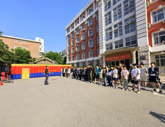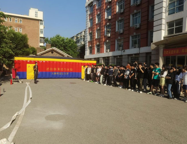 “如何辨识身边的火灾隐患?如何正确使用灭火器?如何使用消防水带?如何扑救初期火灾?”本着让学生们“懂基本消防安全常识、会火场逃生自救”的宗旨,安工部消防科科长陈新利用通俗易懂的语言详细介绍了消防器材装备的功能、性能和使用方法,并结合校园火灾发生的规律特点,有针对性地讲解了学生们在学校日常防火中的相关注意事项,全方位、多角度地对火灾的危险性、火灾预防措施、初期火灾的扑救方法、火场逃生自救技能、火灾报警及灭火器材的使用方法等安全知识一一进行了讲解,并有序组织学生做消防逃生体验。