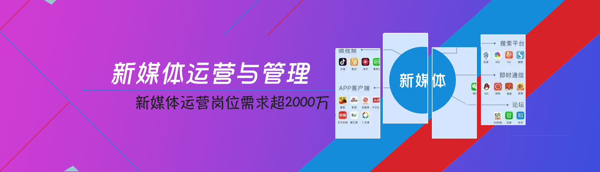 很多人认识新媒体运营,是从微信公众号、微博、抖音号的运营开始的,但这仅是冰山一角。新媒体运营的本质是利用新兴的媒介渠道传播和营销,这是一项长久且通用的能力。媒介平台或许会新生、消亡,但无论媒介怎么变化,有人就有消费,有消费就有市场,有市场就有运营。因此,新媒体运营能力的未来,非常值得期待。当前新媒体运营岗位需求超2000万,人才需求巨大。同时,伴随“全民自媒体”风潮的崛起,不断有个人或团体利用新媒体渠道建立品牌或变现。